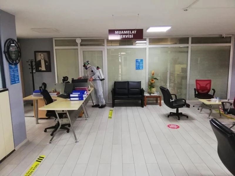 Kdz. Ereğli Belediyesi ekiplerince tedbir amaçlı belirli zamanlarda gerçekleştirilen ilaçlama çalışması kapsamında hizmet binasındaki tüm alanlar ilaçlanarak olası tüm hastalıklara karşı dezenfekte edildi.