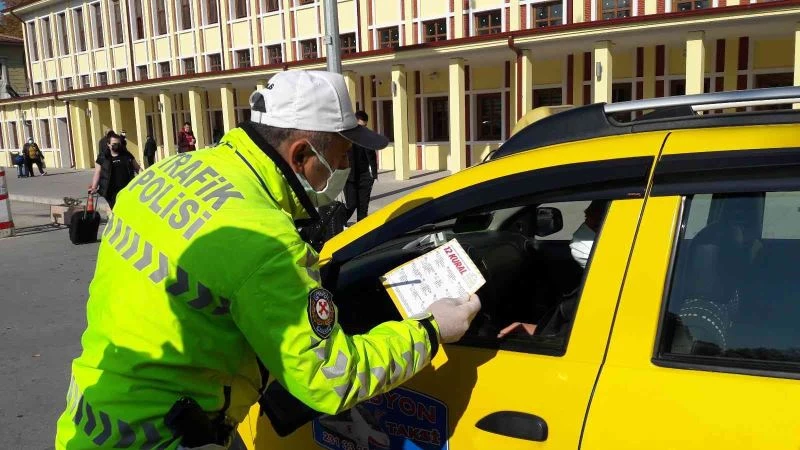 Eskişehir İl Emniyet Müdürlüğü tarafından yapılan denetimde, ticari taksi şoförleri ve taksi duraklarına güvenli seyahat amaçlı bilgilendirme broşürleri dağıtıldı. Trafik Denetleme Şube Müdürlüğü’ne bağlı ekipler, İstasyon Caddesi Gar önünde ticari taksilere yönelik trafik denetimi yaptı. Denetimde yer alan trafik polisleri, ticari taksi şoförlerinin belgelerini ve emniyet kemerlerinin takılı olup olmadığını kontrol etti. Taksi şoförlerinin uyması gerektiği 12 kuralın yazılı olduğu broşürler, taksi duraklarında bütün şoförlerin görebileceği noktalara asıldı.