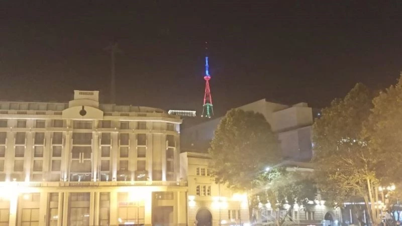 Tiflis Televizyon Kulesi, Azerbaycan bayrağının renkleriyle aydınlatıldı