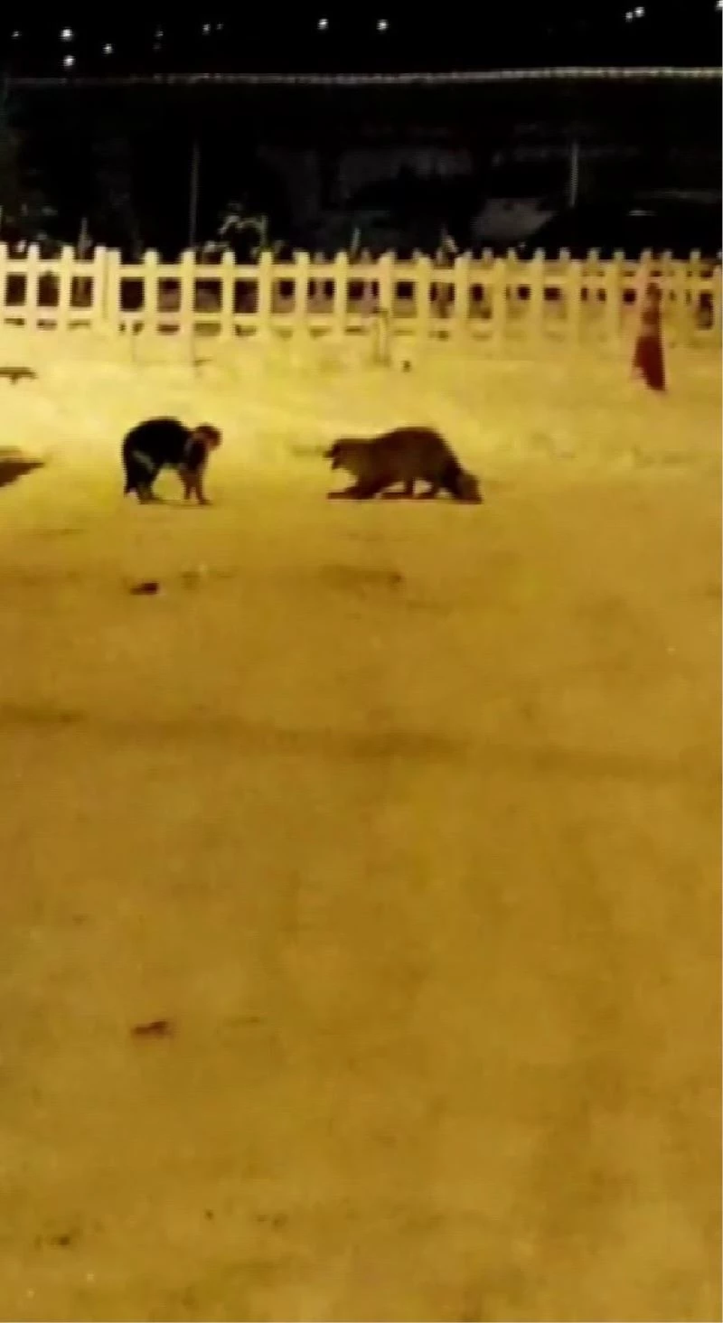 Ardahan’da gece saatlerinde yol ortasındaki tilki ve kedi kavgası görenleri gülümsetti.