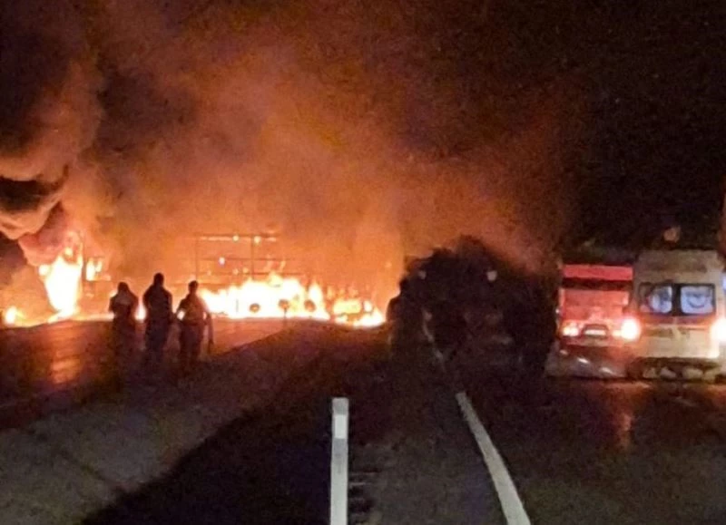 Kütahya-Gediz karayolunda kamyonete arkadan çarpan tır alev alev yandı. Kazada tır şoförü yaralandı.
