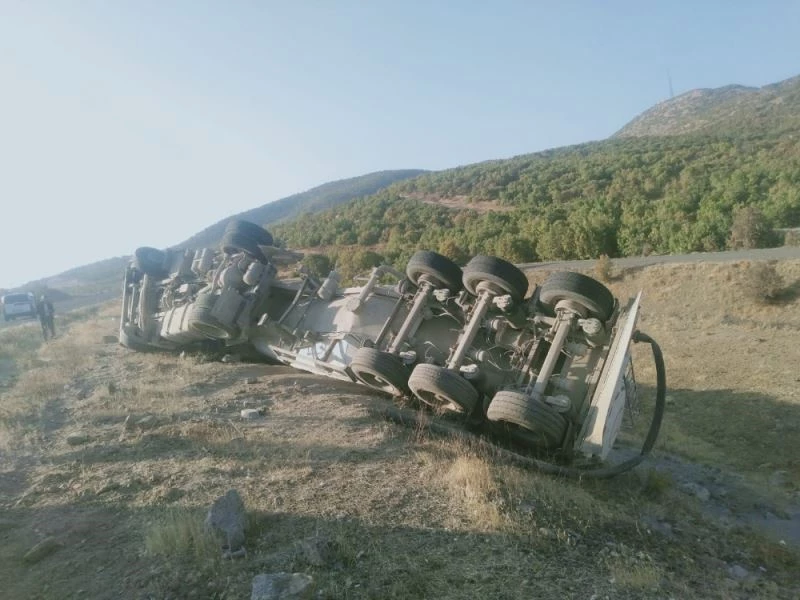 Bingöl’ün Solhan ilçesinde tır devrildi sürücü yara almadan kurtuldu.
