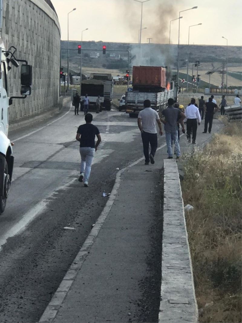 Olay Diyarbakır-Mardin karayolu üçyol mevkinde meydana geldi. Edinilen bilgilere göre, tırın dorsesinde bulunan kamyon henüz bilinmeyen bir nedenden dolayı alev aldı. Dumanları gören tır sürücüsü, kenara çektiği araçtan inerek durumu itfaiye ve güvenlik güçlerine bildirdi. Kısa sürede olay yerine gelen itfaiye ekipleri tarafından müdahale edilen yangın söndürüldü. Yangın nedeni ile bir süre kapalı kalan yol araçların kaldırılmasının ardından tekrar ulaşıma açıldı.
