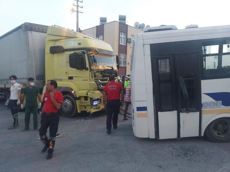 Mersin’in Tarsus ilçesinde tır ile halk otobüsünün çarpıştığı kazada 1 kişi yaralandı.