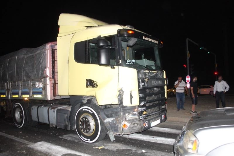 Tır sürücüsü, bir anda önüne çıkan kamyonete çarpmamak için frene basmasına rağmen, kamyonetin tırın önünde sürüklenmesine engel olamadı.