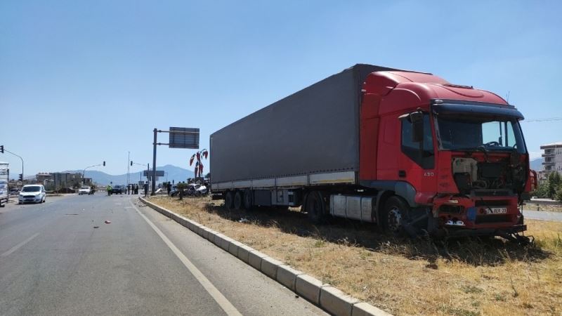 Gaziantep’in İslahiye ilçesinde bir tır otomobili biçti. Otomobilin sürücüsü hayatını kaybederken, kaza güvenlik kamerasına yansıdı.
