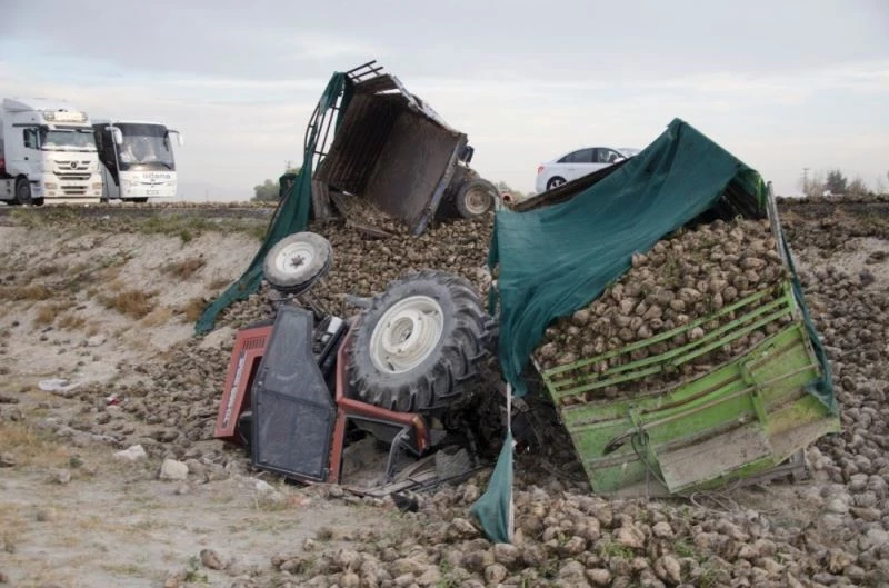 Konya’nın Ereğli ilçesinde, mermer yüklü tırın şeker pancarı yüklü traktörün römorkuna arkadan çarpması sonucu 3 kişi yaralandı.