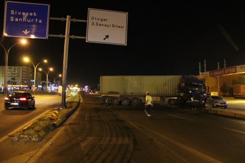 Olay, Diyarbakır-Şanlıurfa karayolunda meydana geldi. Edinilen bilgilere göre 34 AN 57 61 plakalı tır sürücüsü Veli Ö. Hatay’a seyir halinde iken Diyarbakır-Şanlıurfa karayolu üzerinde direksiyon başında uykuya daldı. Bir süre sonra yoldan çıkan tır refüjü ve yön tabelalarını biçerek park halindeki araca çarparak durabildi. Olayda yaralı olmazken gece saatinde yolun boş olması büyük bir faciayı önledi. Olay yerine çağrılan güvenlik güçleri tarafından olayla ilgili inceleme başlatılırken çekici yardımıyla tır bulunduğu yerden kaldırıldı.