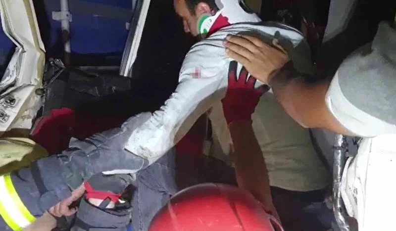 Kocaeli’de seyir halindeki tırın başka tıra arkadan çarpması neticesinde meydana gelen kazada, kabinde sıkışan sürücü itfaiye ekipleri tarafından çıkarıldı.