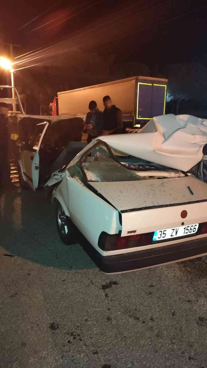 Manisa’nın Kula ilçesi Yurtbaşı Mahallesi E-96 Karayolu üzeri Uşak yönü istikametinde saat 20.30 sıralarında 35 ZV 1566 plakalı otomobil ile seyir halinde olan H.E. (22) isimli sürücü, aynı istikamette seyreden K.K. (35) idaresindeki 27 AEU 587 plakalı tıra arkadan çarptı. Meydana gelen kazada otomobil ikiye bölünürken, sürücüsü H.E. yaralanarak Kula Devlet Hastanesinde tedavi altına alındı.