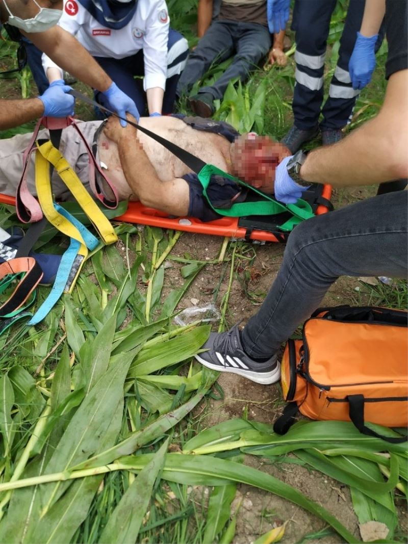 Sakarya’nın Akyazı ilçesinde sürücüsünün tırla çarpışmamak için direksiyonunu kırdığı otomobil yoldan çıkarak tarlada çalışan adama çarptı. Tarlada çalışırken ağır yaralanan şahıs, tedavi altına alındı.
