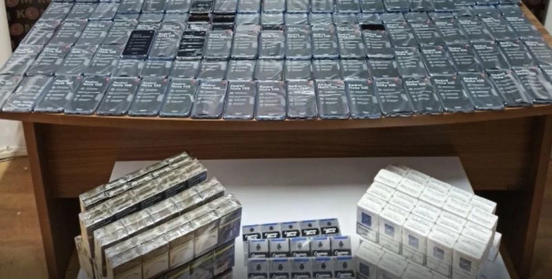 Tır’da kaçak telefon ve sigara ele geçirildi