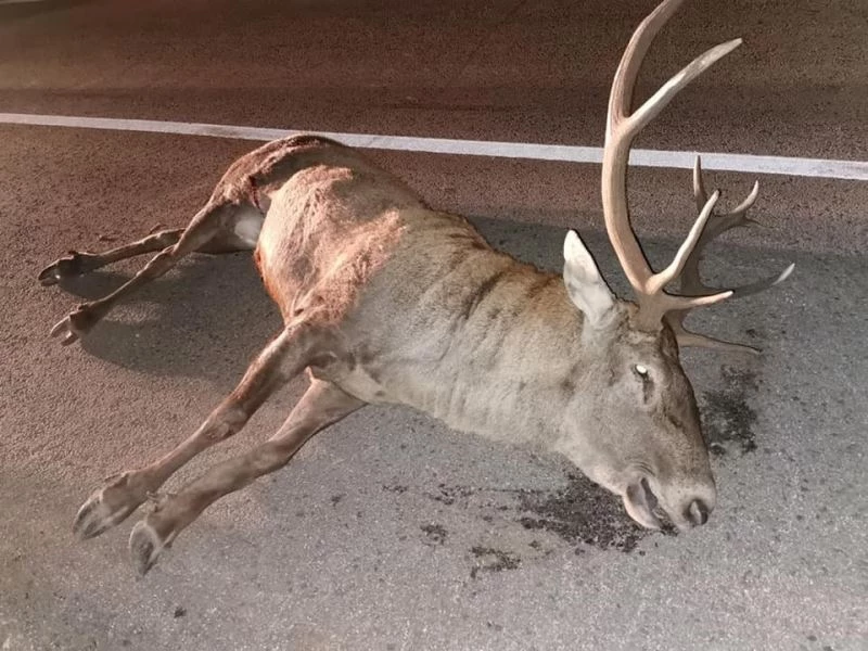 Edinilen bilgiye göre Çavdarhisar ilçesi Avşar köyü yol ayrımına 50 metre mesafede bir geyik, aniden yola çıkarak 26 LE 171 plakalı tırın kasasına çarptı. Çarpma sonucu geyik telef oldu. Olay yerine gelen jandarma, tır şoförü M.A. ile görüşüp görgü tanıklarının ifadesini aldı. Telef olan geyik, jandarma tarafından Milli Parklar Bölge Müdürlüğü yetkililerine teslim edildi.