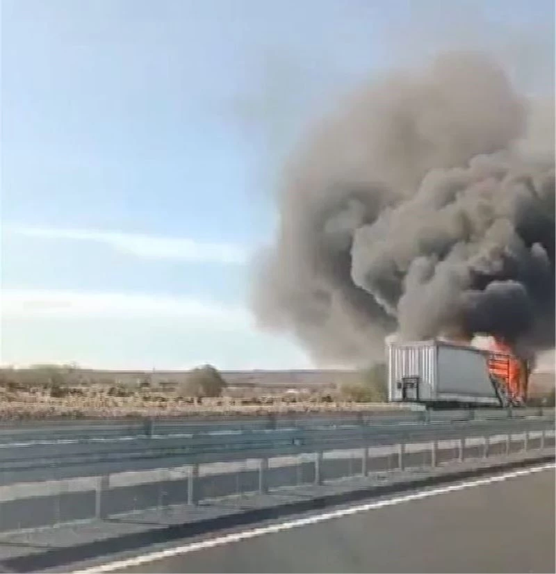 Siverek-Diyarbakır karayolunda seyir halinde bulunan bir tırın dorsesi alev alev yandı
