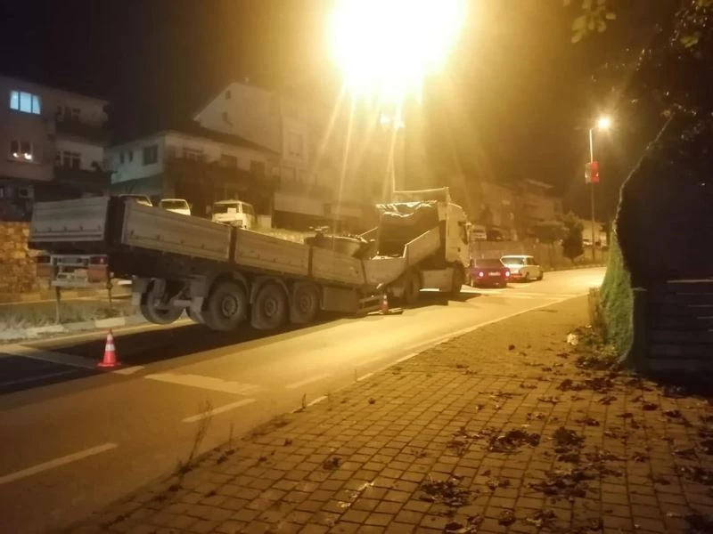 Yaşanan kaza nedeniyle trafik kısa bir süre aksarken, trafik ekipleri başka bir kazaya yaşanmaması için önlem aldı. Tırın dorsesi vinç yardımı ile kaldırıldı.