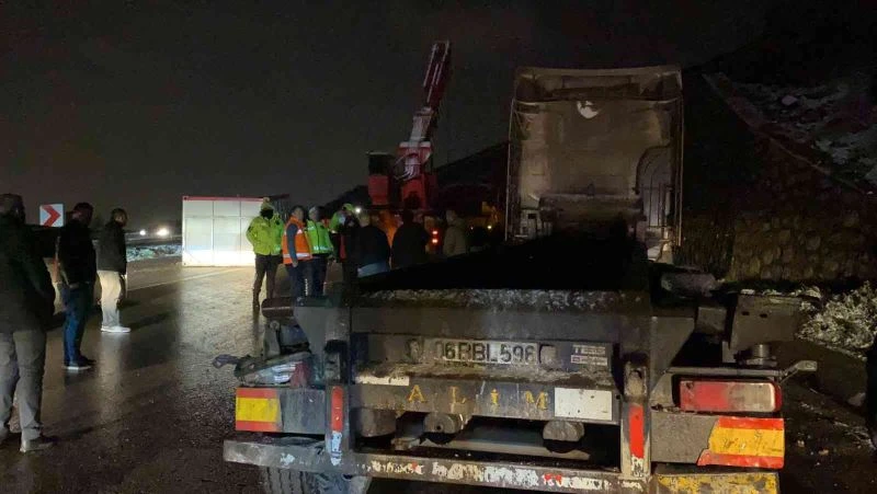 Kocaeli’nin Körfez ilçesi D-100 Karayolu üzerinde karlı yolda kayan tırın taşıdığı konteyner yola devrildi. Tır sürücüsü hafif yaralanırken, D-100 uzun süre ulaşıma kapandı.