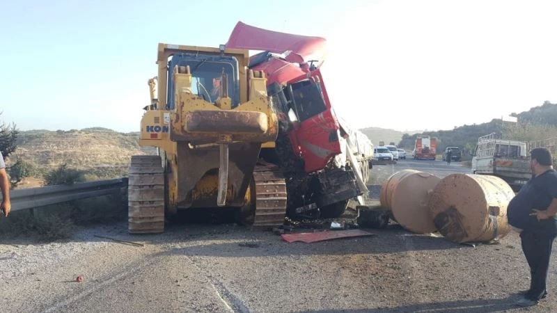 Mersin’in Tarsus ilçesinde tır üzerindeki kepçenin düşmesiyle karşı yönden gelen tırın sürücüsü ağır yaralandı.