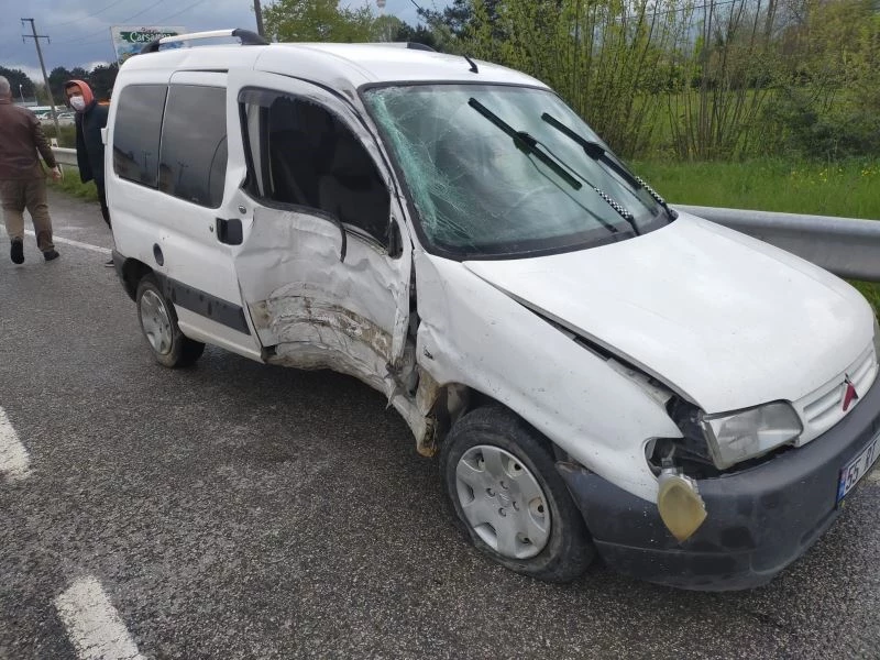 Tırın vurduğu hafif ticari araç elektrik direğine çarptı