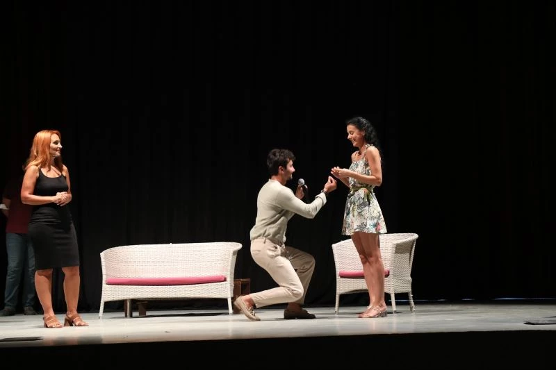 Tiyatro oyununun ortasında sevgilisine evlenme teklif etti