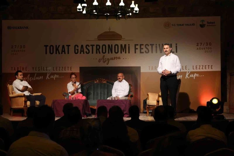 Söyleşi programına katılan Tokat Belediye Başkanı Av. Eyüp Eroğlu, “Tokat Gastronomi Festivali birincisini yaptığımız bu güzel festivalimiz dün kapılarını açtı. Ve bugün ikinci gündeyiz. Dün Emine Erdoğan hanımefendinin katılımlarıyla birinci programımızı yaptık Tokat mutfağı Emine Hanım’a tanıtıldı. Dünden itibaren başlayan programımızın bugünkü, yarınki ve bir sonraki günlerde ise çok değişik etkinliklerle dört gün boyunca Tokat’ta güzel bir Tokat mutfağı esintisi olacak. Şu anda söyleşi alanımızdayız. Tokat mutfağı ve bunun işletmeler mantığında daha nasıl geliştirilebileceği ve Tokat mutfağını dünyaya nasıl tanıtırız, bunları konuşacağız. Bu sadece dört gün süren bir program olmayacak. Bu dört günde elde ettiğimiz güzellikler bir yıl boyunca devam edecek” dedi.