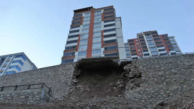 Tokat’ta 16 katlı bir binanın istinat duvarının çalışma yapıldığı anda çökmesi vatandaşları endişelendiriyor.