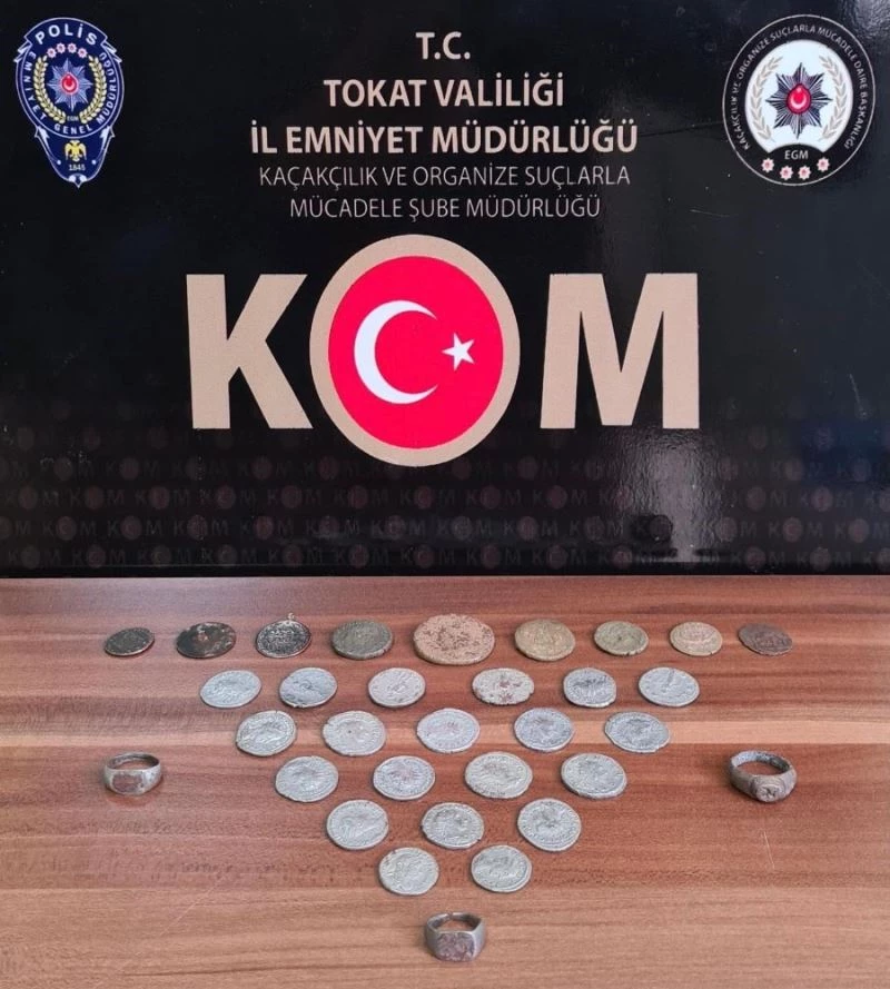 Tokat Emniyet Müdürlüğü Kaçakçılık ve Organize Suçlarla Mücadele Şube Müdürlüğü ekipleri tarihi eser kaçakçılarına yönelik operasyon düzenledi. Erbaa ve Zile ilçelerinde Kültür ve Tabiat Varlıklarını Koruma Kanununa Muhalefet suçu kapsamında düzenlenen operasyonda yakalanan A.A, A,Y, M.Y, S.C, Y.P ve Y.Y isimli 6 şahıs hakkında adli işlem başlatıldı. Polis ekipleri şahısların ev ve araçlarında yaptıkları aramada 30 adet sikke, 4 adet yüzük, 1 adet el yazması Kur’an-ı kerim, 1 adet kolye olmak üzere toplam 36 parça tarihi eser ele geçirildi. Olayla ilgili soruşturma devam ediyor.