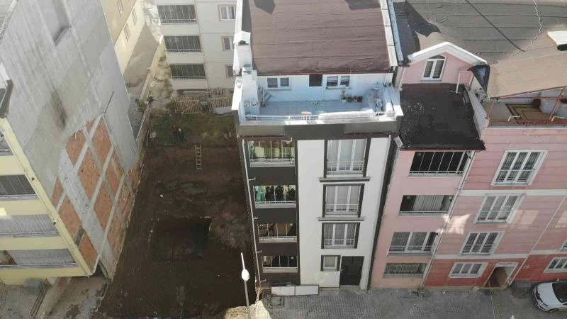 Tokat’ta çökme riski taşıyan apartman havadan görüntülendi