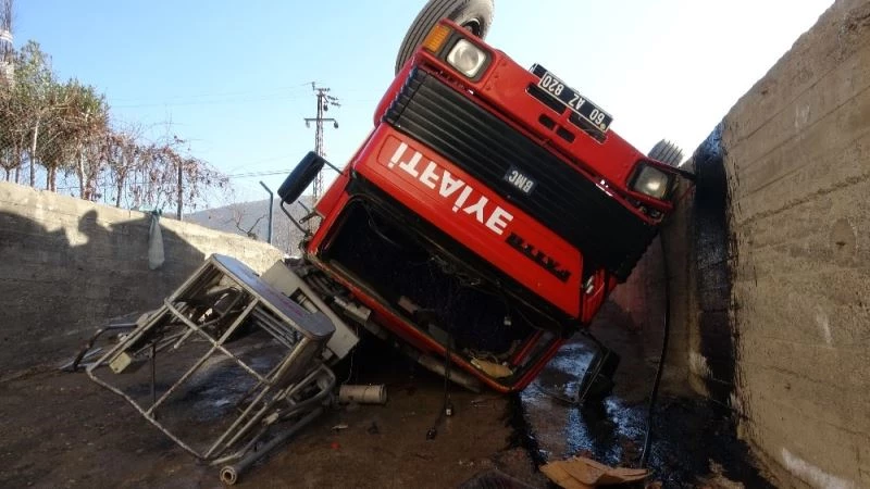Tokat’ta, geri geri giden itfaiye aracının depo girişindeki boşluğa devrilmesi sonucu meydana gelen kazada 2 kişi yaralandı.