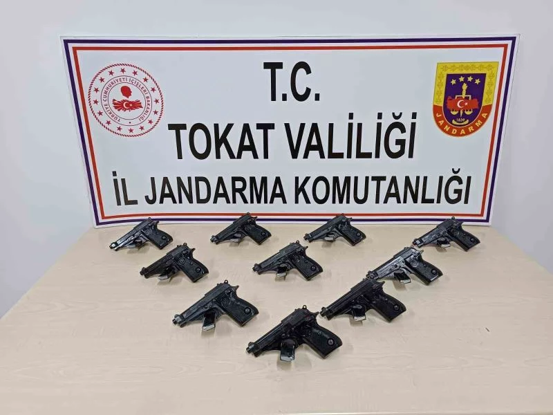 Tokat İl Jandarma Komutanlığı ekiplerince, yapılan çalışmada bir kişinin Doğu Anadolu Bölgesinden araçla kente silah getireceği ihbarı aldı. Jandarma ekiplerinin şüphelinin aracında yaptığı aramada, 10 adet 7,65 mm tabanca ve tabancalara ait 10 adet şarjör ele geçirildi.