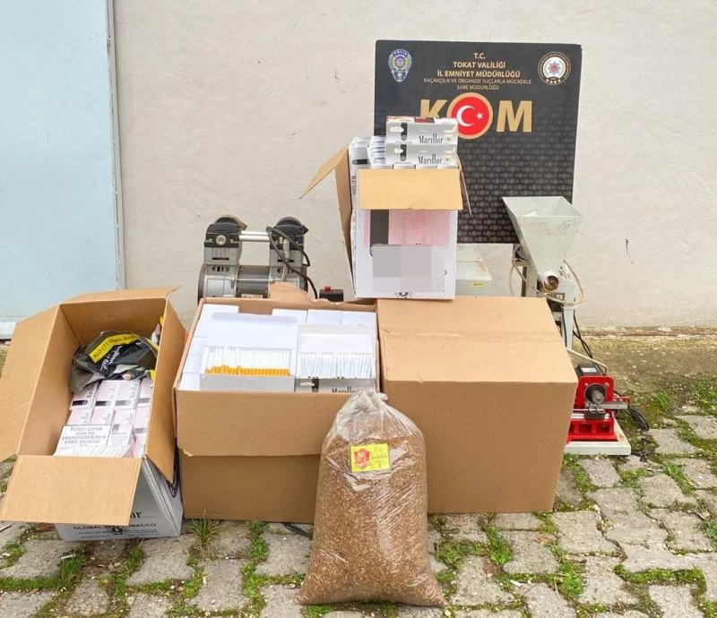 Edinilen bilgiye göre; Tokat İl Emniyet Müdürlüğü KOM Şube Müdürlüğü’nce tütün ve tütün mamulleri kaçakçılığına yönelik operasyon düzenlendi. Yapılan takipli çalışmalar neticesinde il merkezinde tespit edilen bir adreste arama yapıldı. Yapılan aramada 14 bin 400 adet kıyılmış tütün ile doldurularak satışa hazır hale getirilmiş makaron, 20 bin adet bandrolsüz boş makaron, 455 adet mükerrer olarak kullanılması için hazırlanmış TAPDK bandrolü, 5 kilogram kıyılmış açık tütün, 1 adet hava kompresörü, 1 adet elektrikli sigara sarma-doldurma makinesi ele geçirildi. 2 şüpheli hakkında soruşturma başlatıldı.
