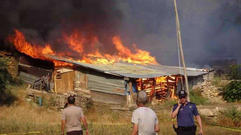Tokat’ta bir ağılda meydana gelen yangın korkuttu, o anlar kameralara yansıdı.