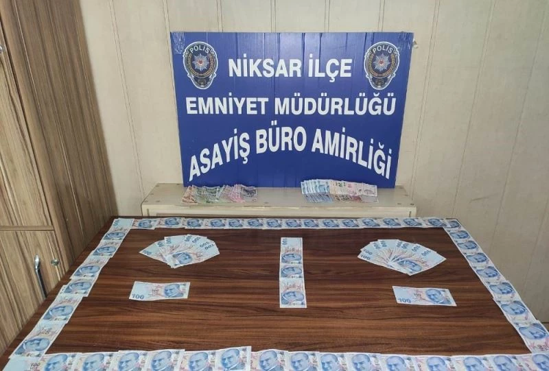 Niksar İlçe Emniyet Müdürlüğü ekipleri, ilçede esnaflara sahte para verildiğinin bildirmesi üzerine çalışma başlattı. Ekipler, yaptıkları araştırmalar sonunda şüphelilerin içinde bulunduğu 06 ADH 505 plakalı otomobilin Erbaa ilçesine kaçtığı bilgisi üzerine Erbaa İlçe Emniyet Müdürlüğü ekipleri ile yapılan koordineli çalışma sonucu otomobili ve E.D. (48) adlı kişiyi gözaltına aldı. Araç içerisinde ve şahsın üzerinde yapılan aramada toplam 78 adet 100 TL’lik sahte 7 bin 800 TL değerinde para ele geçirilirken, diğer iki kişinin ise Tokat’a geçtiği bilgisini aldılar. Yapılan çalışmalar sonucu Y.K. ve Y.Y. adlı iki şahıs ise il merkezinde yakaladı.
