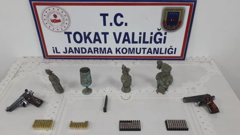 Tokat’ın Zile ilçesinde düzenlenen operasyonda tarihi eser niteliği taşıyan 4 adet obje ile 2 adet tabanca geçirildi.