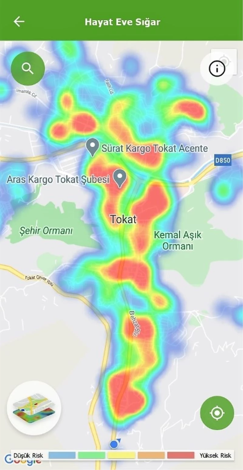 İçişleri Bakanlığınca uygulanan akşamları ve hafta sonları sokağa çıkma yasakları meyvelerini vermeye başladı. Tokat’ta kısıtlama öncesi günlük ortalama vaka sayısı bin iken 300’lere kadar geriledi. Vakalardaki düşüş Hayat Eve Sığar (HES) uygulamasındaki risk haritasına da yansıdı. 10 gün önce öncesinde neredeyse tamamı kırmızı olan kent haritasında yeşil alanlar oluşmaya başladı.
