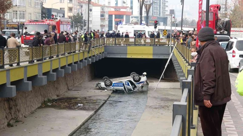 Tokat’ta trafik polisi aracı dereye uçtu: 1 yaralı