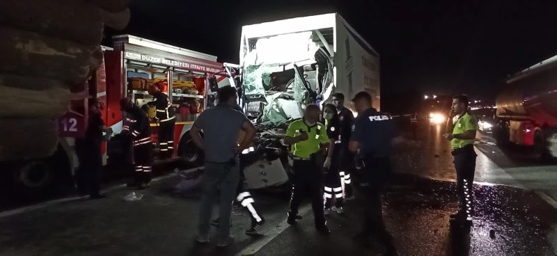 DÜZCE – TEM otoyolu Düzce kesiminde meydana gelen kazada tomruk yüklü kamyona arkadan çarpan kamyon hurdaya dönerken sürücüsü ise hayatını kaybetti.