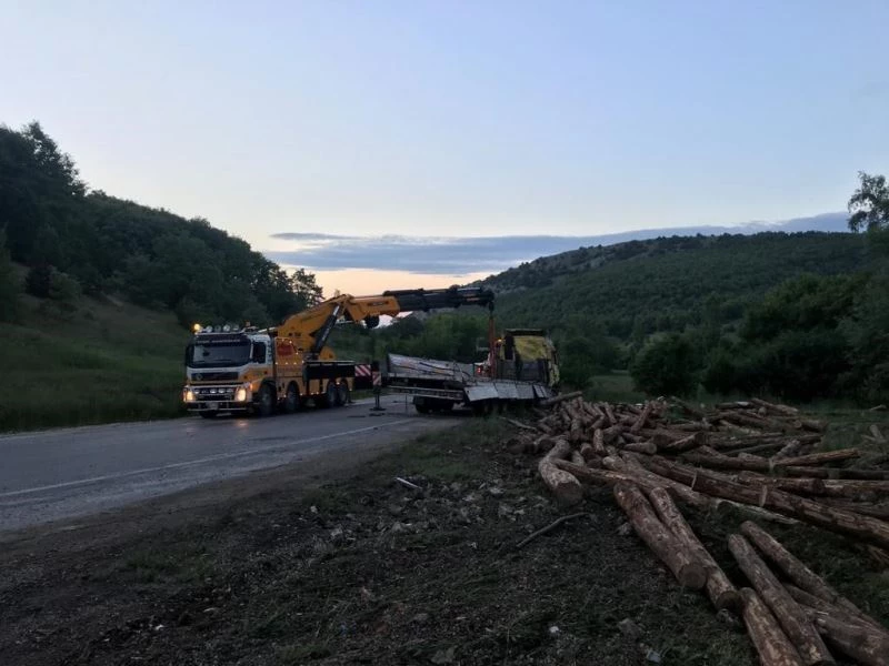 Bilecik’te tomruk yüklü olan tırın devrilmesi sonucu meydana gelen trafik kazasında sürücü yaralandı.