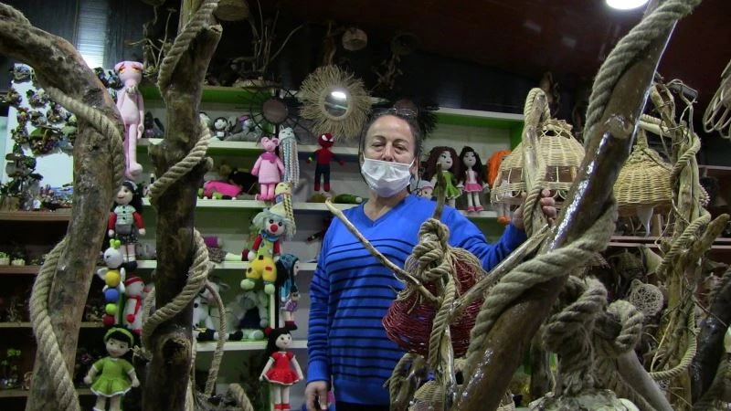 Artvin’de yaşayan Yasemin Bekar, dere ve nehir kenarlarından topladığı ağaç kökleri ve çeşitli malzemeleri işleyerek sanat eserine dönüştürüyor.