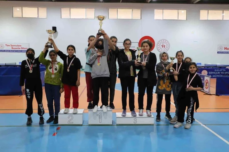 Malatya’da düzenlenen orta okullararası Masa Tenisi il şampiyonasında toplara raketlerle il birinciliği için vuruldu.