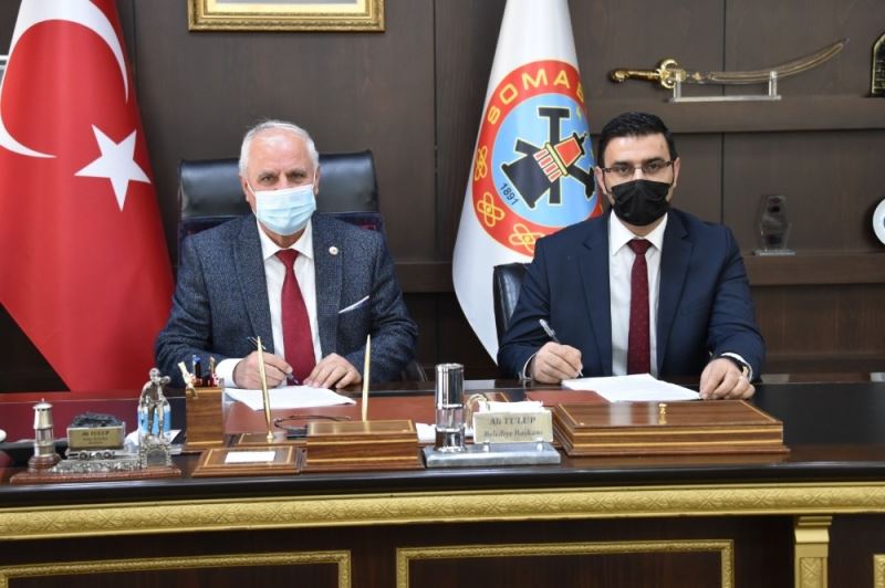 Soma Belediye Başkanı Ali Tulup’un makamında gerçekleştirilen imza törenine SOMABEL A.Ş. Yönetim Kurulu Başkanı Temel Korkmaz, Yönetim Kurulu Üyeleri Sabır Tuna ve Öden Yapıcı, Hizmet-İş Sendikası Manisa Şubesi Başkanı Turan Karafil, İşyeri Temsilcileri Candaş Güven, Özge Çoban, İsmail Vatanoğlu, Hasan Çaktı katıldı.