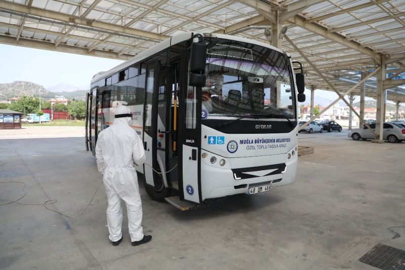 Muğla’nın 13 ilçesinde bulunan bin 431 özel toplu taşıma aracı Muğla Büyükşehir ekipleri tarafından haftada bir gün düzenli olarak dezenfekte işlemini gerçekleştiriliyor.