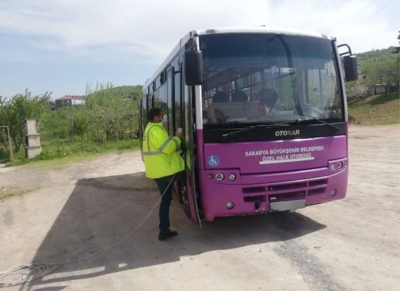 Sakarya Büyükşehir Belediyesi Korona virüsle mücadele kapsamında durakları ve toplu taşıma araçlarını dezenfekte etmeye devam ediyor. Sokağa çıkma kısıtlamalarını fırsata çeviren Büyükşehir ekipleri daha hijyenik bir ortamda ulaşımı sağlamak adına şehir genelinde durak ve toplu taşıma araçlarında dezenfekte çalışmaları gerçekleştiriyor.