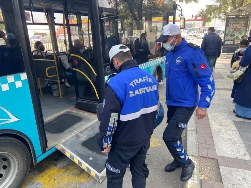 Manisa Büyükşehir Belediyesi Ulaşım Dairesi Başkanlığı’na bağlı zabıta ekipleri, kent merkezinde toplu taşıma araçlarında denetimde bulundu. Zabıta ekipleri, vatandaşların sağlıklı ve güvenli bir ulaşım sağlayabilmesi için toplu taşıma araçlarında maske ve hijyen kurallarından engelli rampasına kadar bir çok konuda kontrol yaptı.