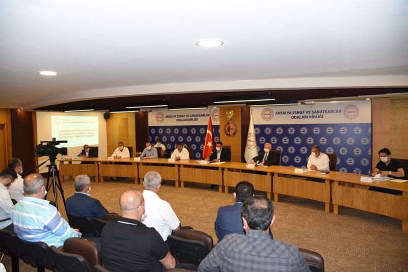 Antalya Esnaf ve Sanatkarlar Odaları Birliği’nde, Covid-19 tedbirleri kapsamında kapasiteleri yarı yarıya düşürülen toplu ulaşım esnafına mazot desteği sağlanması ve fiyat tarifelerinde artış yapılması hakkında toplantı gerçekleştirildi. AESOB Başkanı Adlıhan Dere: " Toplu taşıma esnafımıza da yeni bir ücret tarifesi uygulanması zorunluluk haline geldi. Ulaşım esnafımızın bu şartlarda ayakta kalması, evine ekmek götürmesi maalesef mümkün değil." dedi.