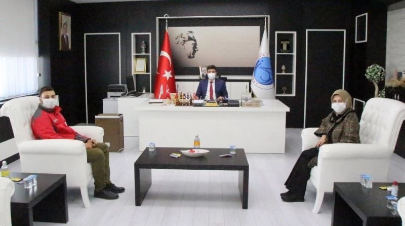 Kilis 7 Aralık Üniversitesi Rektörü Prof. Dr. Mustafa Doğan Karacoşkun, Türk Kızılay’ı Kilis Toplum Merkezi Yöneticisi Ersun Şen ve Geçim Kaynağını Geliştirme Programında Takım Sorumlusu Usame Çolakoğlu’nu rektörlük makamında ağırladı.