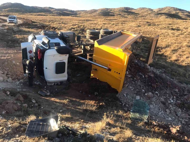Sivas’ta özel bir firmaya ait toprak yüklü kamyonun devrilmesi sonucu 1 kişi yaralandı.