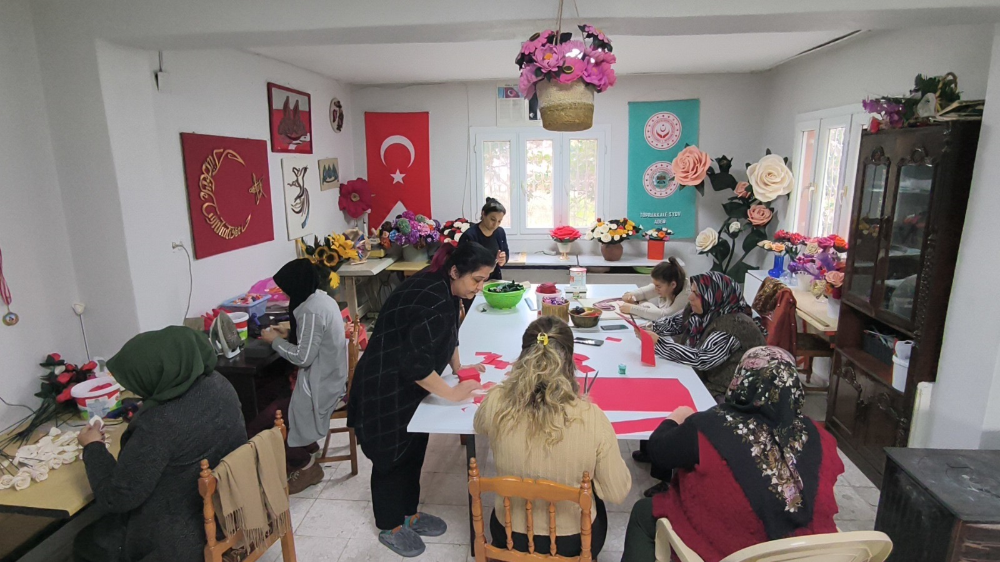 Kurs kapsamında yapılan çalışmaların yalnızca el işiyle sınırlı olmadığını belirten Kundakçı, üretilen EVA çiçeklerin organizasyonlarda, süslemelerde ve çiçekçilere yönelik üretimde kullanıldığını söyledi.