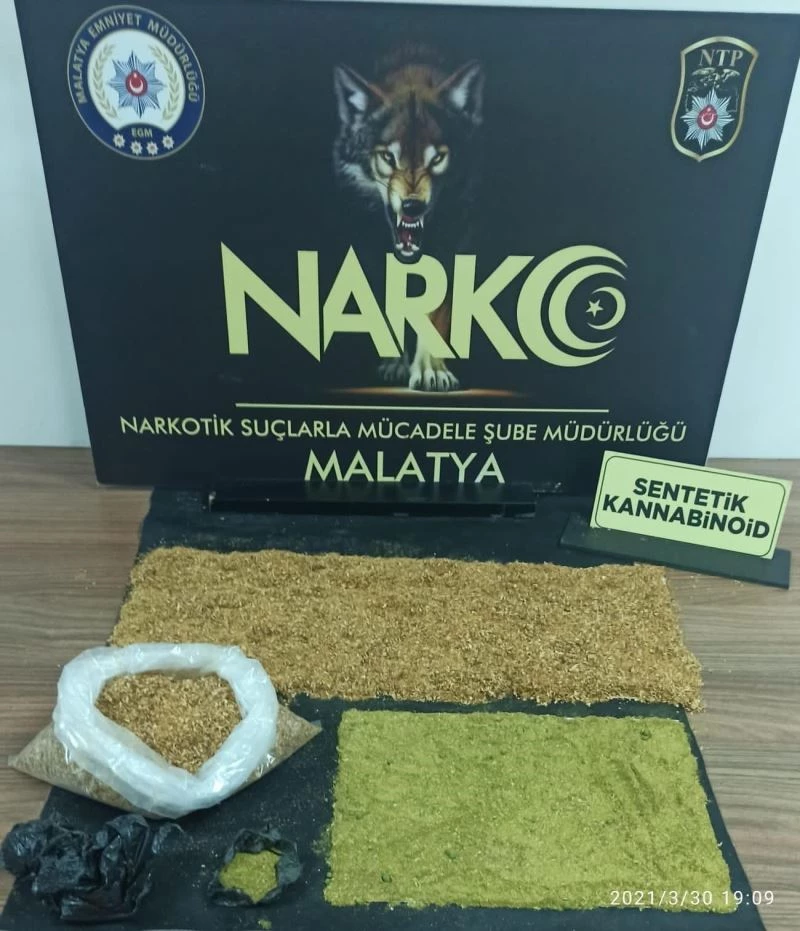 Edinilen bilgilere göre, Malatya Emniyet Müdürlüğü Narkotik Suçlarla Mücadele Şube Müdürlüğü ekiplerince torbacı olarak tabir edilen sokak satıcılarına yönelik operasyon gerçekleştirildi. Düzenlenen operasyonda 468 gram sentetik kannabinoid maddesi ele geçirildi. Konu ile ilgili gözaltına alınan 2 şahıs çıkarıldığı mahkemece tutuklandı.