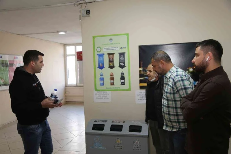 Personelin çalıştığı ortamda verilen ‘sıfır atık’ eğitimlerinde çalışanların kendi çöpünü nasıl ayrıştıracağı anlatılırken, sıfır atık sisteminin önemine değinildi. Kağıt, plastik, cam, metal, organik atıklar ve bütün bu atıkların geri kazanımı için belediyenin hizmet binalarında koridorlara yerleştirilen ’Sıfır Atık Kumbaraları’ ile ilgili personele detaylı bilgiler de verildi.