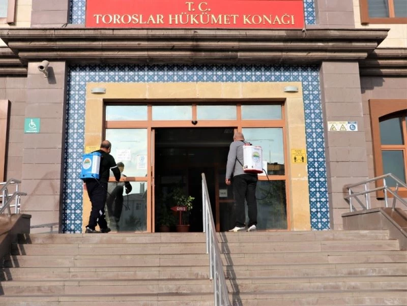 Toroslar Belediyesinden yapılan açıklamaya göre, Temizlik İşleri Müdürlüğü bünyesindeki dezenfekte ekibi, 67 mahallenin tamamına girerek ortak kullanım alanlarında gerçekleştirdiği temizlik ve hijyen çalışmalarını sürdürüyor. Çalışmalar kapsamında tüm kamu kurum ve kuruluşları, ibadethaneler, sağlık merkezleri, muhtarlık binaları, işletmeler düzenli bir şekilde dezenfekte ediliyor. Muhtarların ve vatandaşların ilettiği talepler de dikkate alınarak, salgına karşı önlemler daha da sıklaştırıldı.